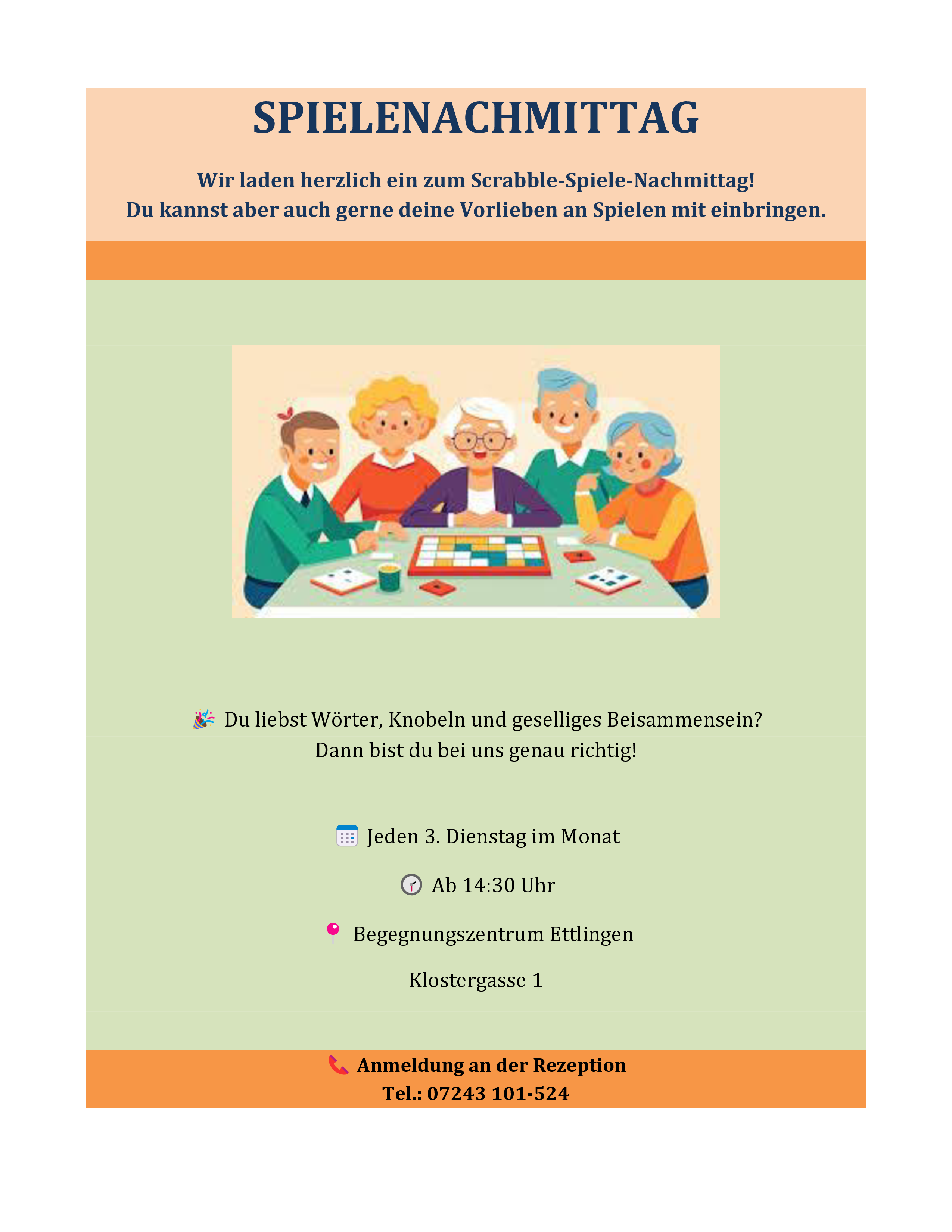 „Spielenachmittag“ – jeden 3. Dienstag im Monat (ab 14:30 Uhr, Cafeteria)